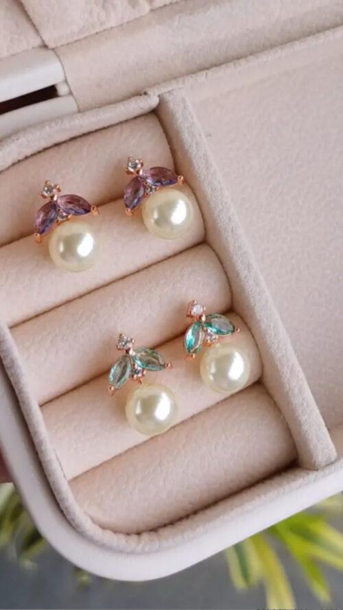 brinco perola cristais candy